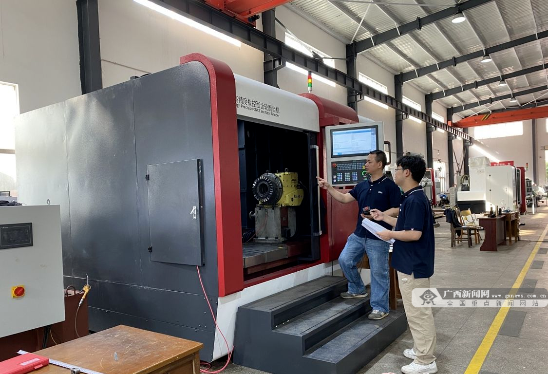 桂林桂北公司技术工程师操作和查看全尺寸大空间高精度数控面齿轮磨齿机设备运行情况。章翌 摄
