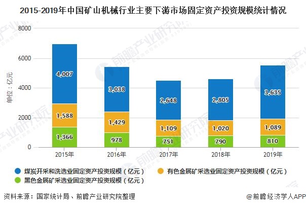 2015-2019年,矿山机械行业主要下游市场中,煤炭开采和洗选业固定资产投资规模较大,远超有色金属矿采选业和黑色金属矿采选业固定资产投资,整体而言=○★,我国矿山机械行业主要下游市场需求回升。2019年,煤炭开采和洗选业固定资产投资规模达3635亿元,同比上升29△▷.59%▷…,上升幅度较大。有色金属矿采选业和黑色金属矿采选业固定资产投资规模分别为1089亿元和810亿元-▷,分别同比上升6.76%和2.53%。